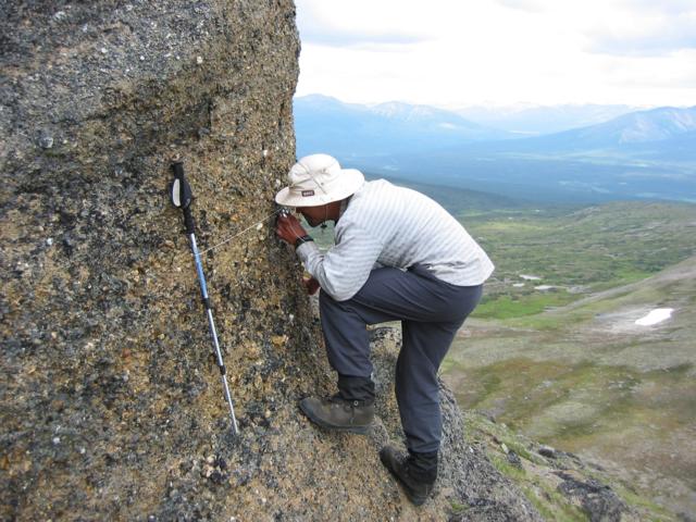 A: 9 to 5 in the office. I generally do 3-4 weeks of fieldwork in the summers: 7 am breakfast; 8 am helicopter departure; hike all day and clamber over rock outcrops to make the best observations possible; lunch with a view; 6 pm helicopter pick up; dinner by 8 pm; plan the next days adventure before bed.